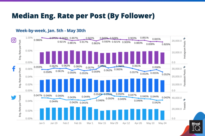 While this phenomenon has shown more activity on the web, it seems to have affected engagement per post since January and it seems to continue to be on a decline as we speak. This is something that is happening on all niches with different levels of severity and the charts below explain it in detail.